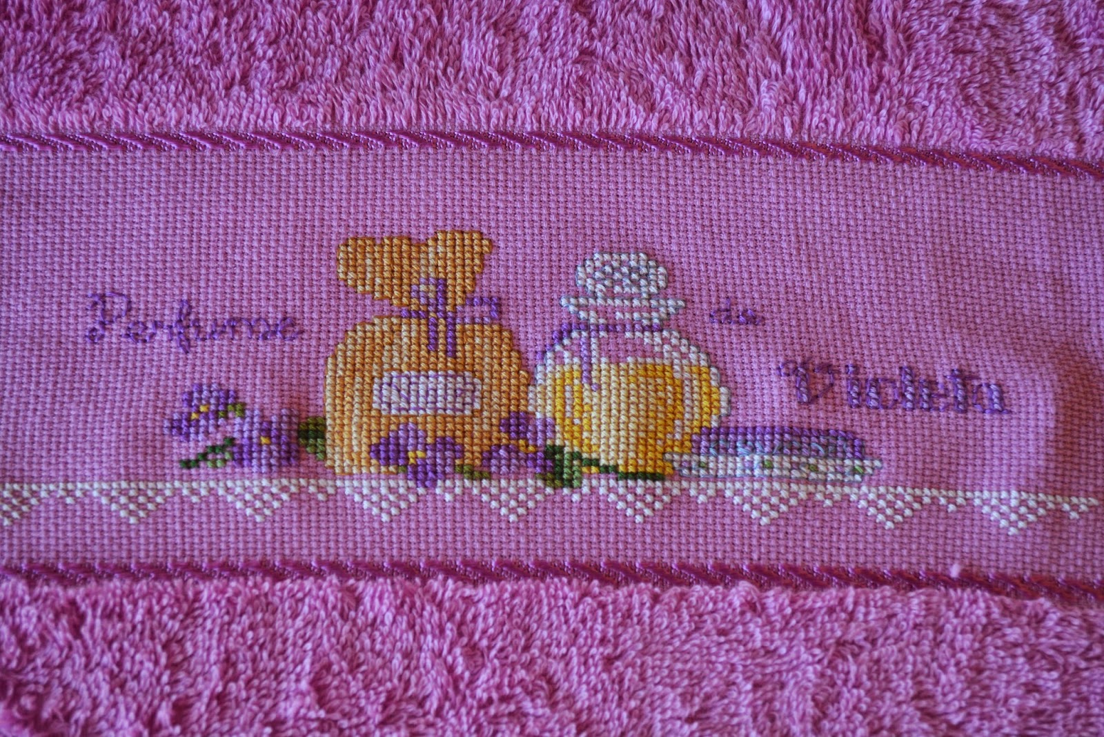 A perfume de violetas huelen estas toallas que he bordado a punto de cruz. Solo con verlas ya te llega su perfume !! a que son bonitas !! me ha quedado un bordado tan romántico, bueno a mí me lo parece. El punto de cruz me relaja tanto, que aunque tengo muchos trabajos pendientes, de costura, punto, ganchillo, siempre tengo que tener algo de punto de cruz en mis manos para que mi ajetreada cabeza se relaje.